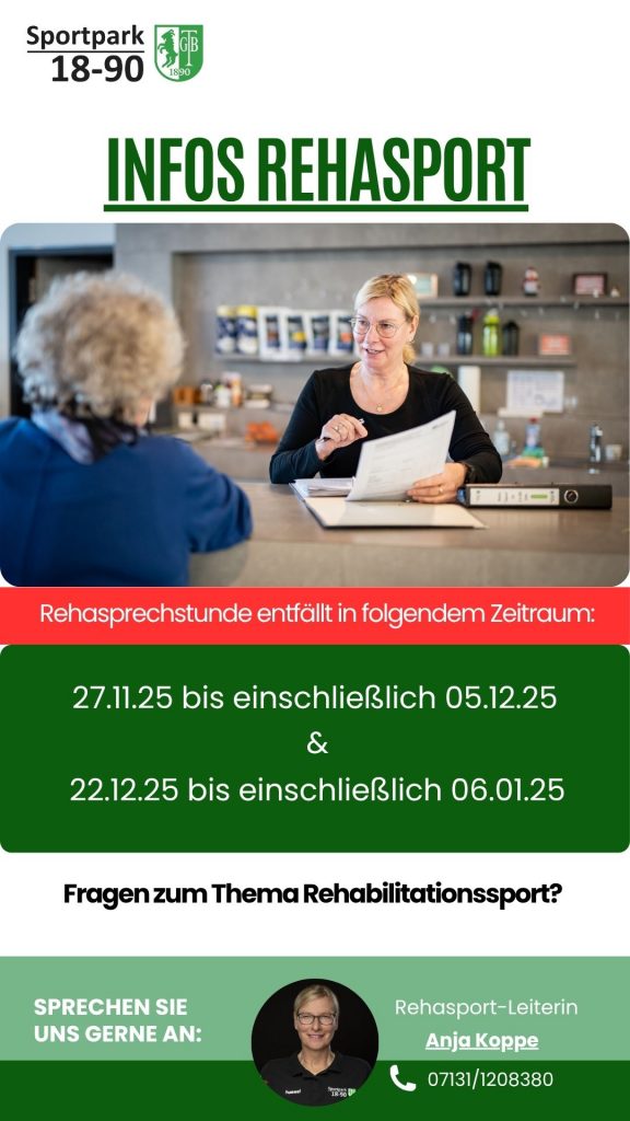In dieser Zeit können keine neuen Rehasport-Verordnungen oder Verlängerungen bearbeitet werden.